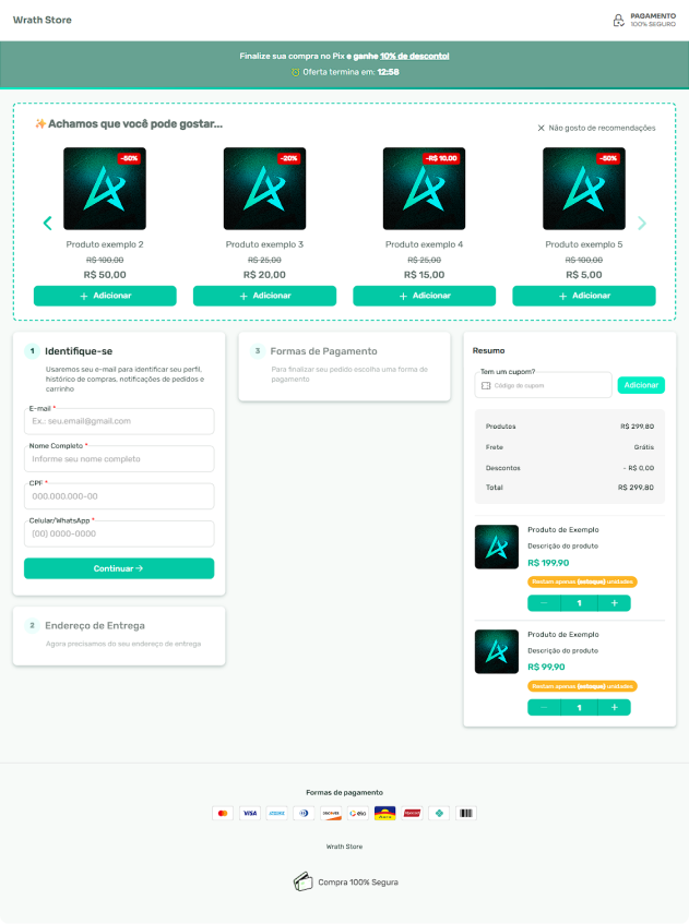 Código fonte limpo e otimizado para o seu checkout rodar sem gargalos e com maior estabilidade.